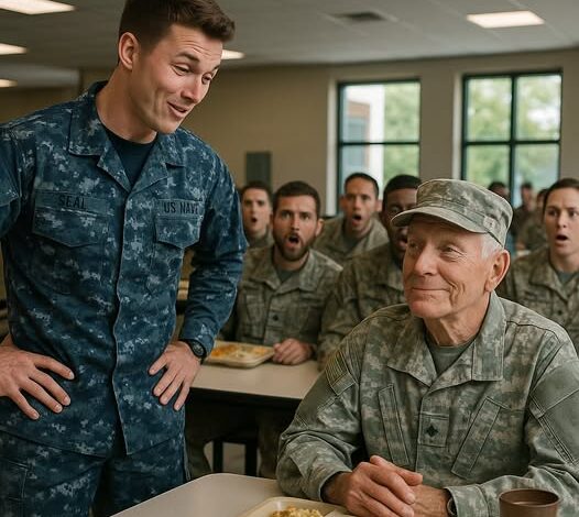 They piled their trays high with enough calories to keep a human being alive while nearly drowning or getting shot at. But Miller wasn’t focused on the food. His eyes drifted toward the back corner—where an old man in a tweed jacket sat alone, quietly eating chili like time didn’t apply to him.