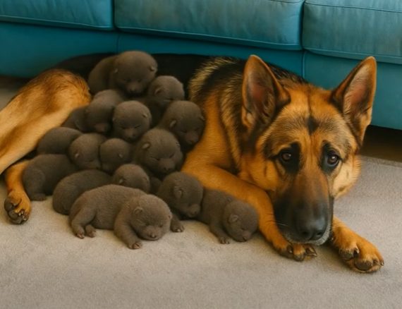 Five pups emerged, small, strong, and covered in soft gray fur that shimmered under the lights. Dr. Chen studied them closely. “They’re not pure German Shepherd,” she said. “These are wolf-dog hybrids.”