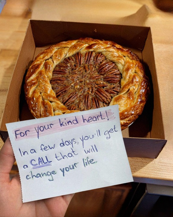 Then everything changed with one unexpected delivery. A beautifully baked pecan pie was placed in my hands, along with a note that made my knees go weak. A blind, terminally ill hospice patient who had received many of my pies had been quietly tracking my nightly visits. In her message, she wrote that my baking brought warmth and joy to her final months—and as her final gesture, she chose me as the heir to her estate. The gift stunned me, not for its financial value, but because someone had truly understood the love behind every pie I made.