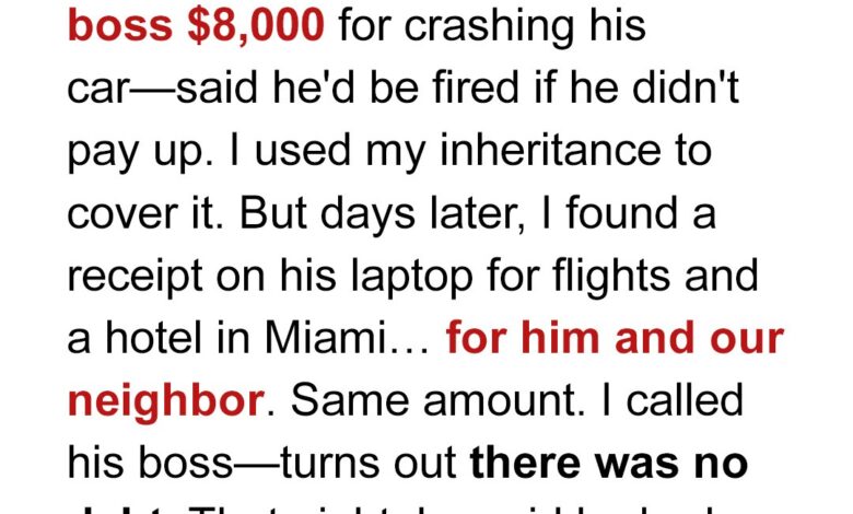 Three months later, he staggered through the front door looking like he’d seen a ghost. He told me he’d crashed his boss’s car and owed $8,000 or he’d be fired. He made it sound urgent, humiliating, desperate. I didn’t even hesitate. I transferred the money that night. That’s what you do when you’re married — you hold each other up.