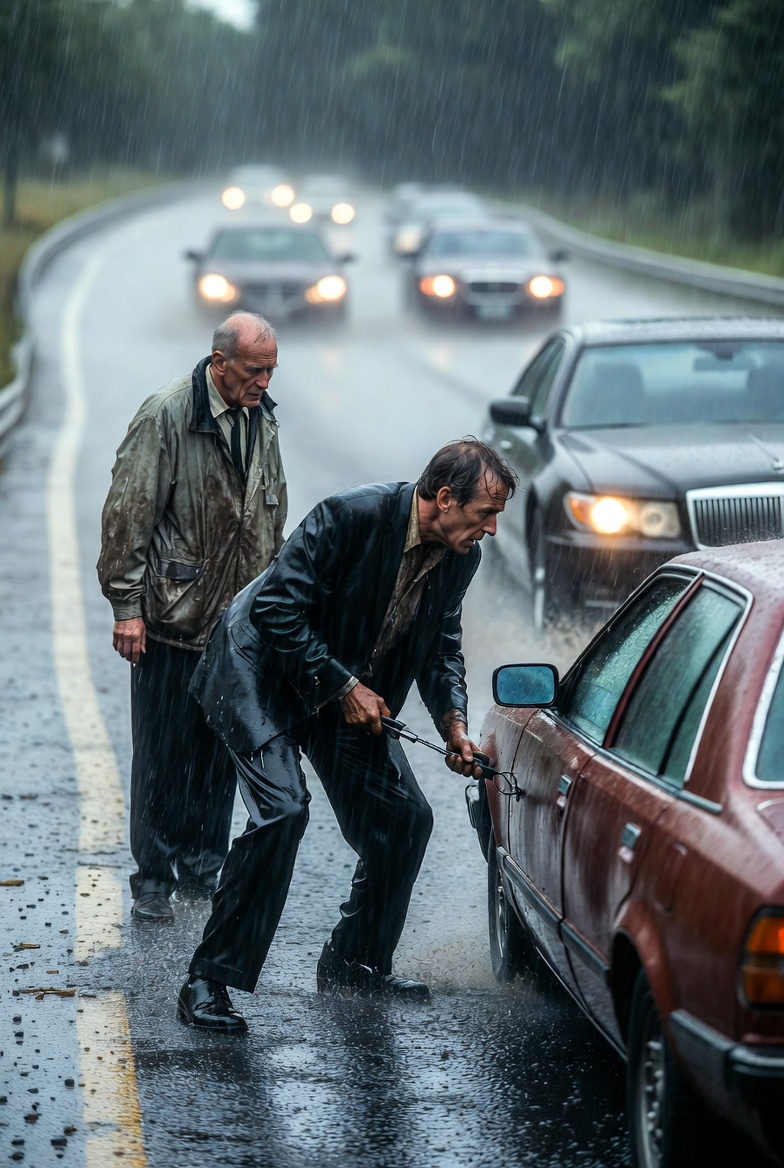 “You’re all set,” I said, wiping rain from my eyes. “But that spare is a donut. Do not go over fifty. And get off at the next exit to check the pressure.”