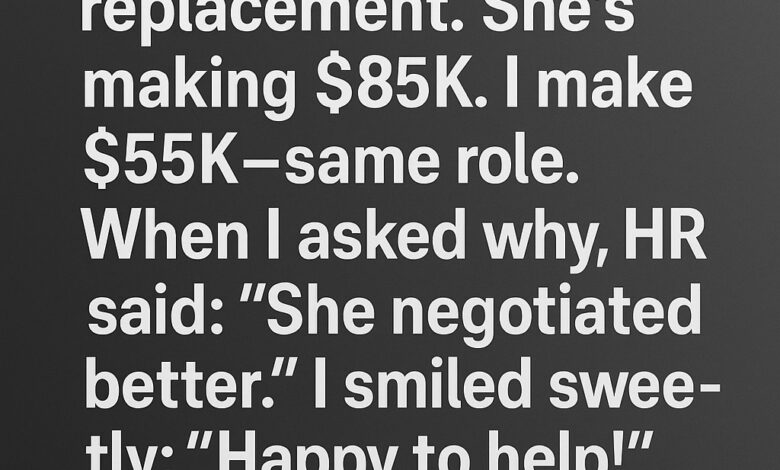 I knew something was wrong the moment my boss asked me to “stay late all week” to train the woman who would be taking over my job. The request was too abrupt, too rehearsed, too eager. But nothing prepared me for the bomb HR dropped with casual indifference: my replacement would earn $85,000. I had been making $55,000 for the exact same role, with years of experience behind me and a reputation for fixing problems no one else could handle. When I asked why there was such a massive pay difference, HR didn’t even blink. “She negotiated better,” they said, as if that settled everything.