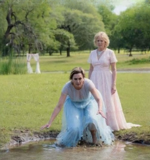 Effie stumbled, flailing for balance, and fell straight into the muddy bank. Her pale blue dress was ruined instantly. Guests gasped. Marie dropped her camera. Alma clutched her chest in feigned shock.