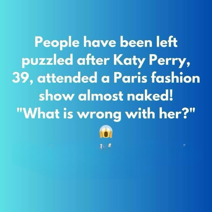 Posted on October 25, 2025 By admin No Comments on People Shocked After Katy Perry Appears Nearly Naked at Paris Fashion Show — ‘What’s Wrong with Her?’