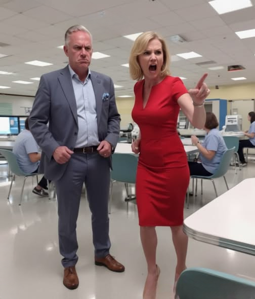 I looked up. A tall woman in a crisp white blazer and matching slacks stood at the door, heels clicking, posture rigid, expression severe. Behind her, a man in a dark suit scrolled through his phone, oblivious.