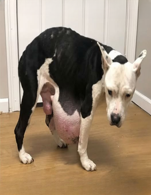 The air inside the shelter office hung heavy, thick with the kind of silence that only heartbreak can create. On the glowing screen before them, the image of Nina—a black and white dog with eyes full of sorrow—spoke louder than any words could. Her frail body told a story of prolonged suffering, but it was the grotesque, grapefruit-sized tumor swelling from her abdomen that truly gripped the hearts of the Wright Way Rescue team. This wasn’t just another stray in need of help; this was a portrait of endurance, a living testament to neglect, and a desperate plea for mercy.